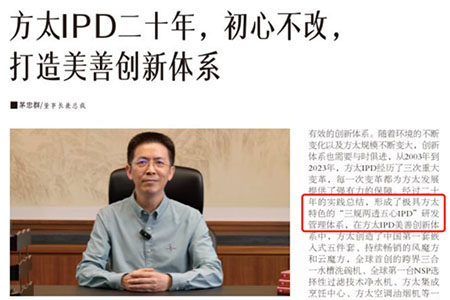方太從2003年導(dǎo)入IPD開(kāi)始,經(jīng)歷三次重大變革,經(jīng)過(guò)多年實(shí)踐總結(jié),形成了極具方太特色的“三規(guī)兩透五心IPD”研發(fā)管理體系。通過(guò)此體系,方太創(chuàng)造了中國(guó)第一套嵌入式五件套、全球首創(chuàng)的水槽洗碗機(jī)、全球第一臺(tái)NSP選擇性過(guò)濾技術(shù)凈水機(jī)、集成烹飪中心等美善產(chǎn)品,引領(lǐng)行業(yè)健康發(fā)展。